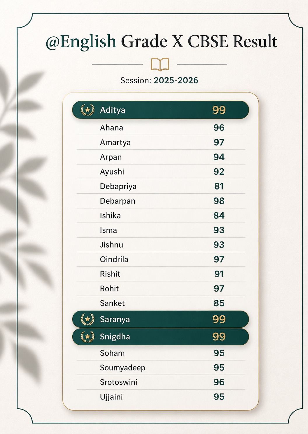 At @ENGLISH, we believe every student has a unique voice and our job is to help them find it. Whether you’re preparing for board exams, struggling with grammar, working on essays, or want to communicate more confidently, we’re here to guide you every step of the way.